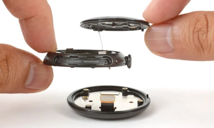 وأوضحت iFixit أن الساعة تستخدم مسمارين فقط مع حلقة مطاطية لضمان مقاومة الماء، بدلًا من المادة اللاصقة التقليدية، كما يمكن إزالة الغطاء بسهولة عند فك المسمارين المخفيين أسفل موصل السوار، فيما تمنع الحلقة تسرب الماء إلى المكونات الداخلية.