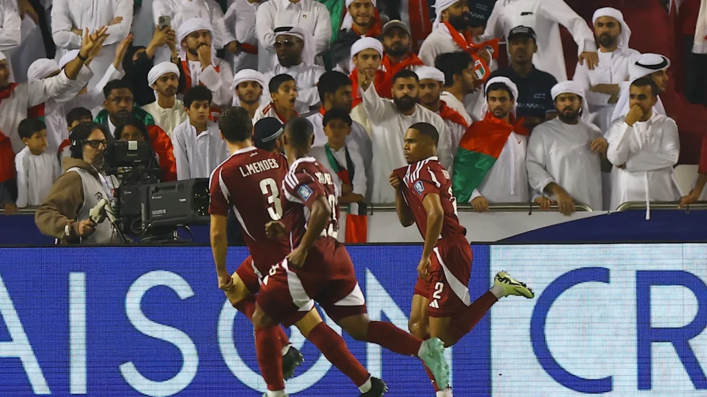 حقق المنتخب القطري فوزًا مهمًا على الإمارات بنتيجة 2-1 في مباراة حاسمة ضمن تصفيات كأس العالم 2026، وشهدت المباراة أهدافًا مثيرة وبطاقة حمراء أثرت على مجريات اللقاء، حيث افتتح بوعلام خوخي التسجيل لقطر في الدقيقة 48 برأسية بعد عرضية من أكرم عفيف، وأضاف بيدرو ميجيل الهدف الثاني في الدقيقة 73 أيضًا برأسية، قبل أن يقلص سلطان عديل النتيجة للإمارات في الدقيقة 98 من المباراة.